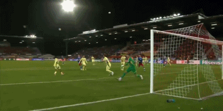 27’布罗德黑德抽射破门,裁判员观赏视频裁判裁决越位在先进球无效