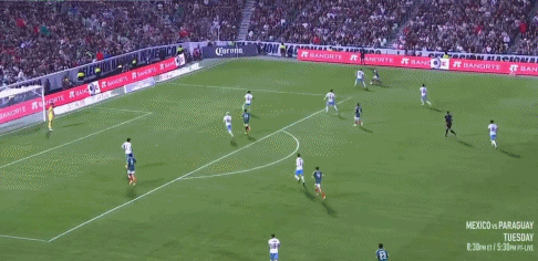 35’阿尔瓦拉多直传球,希门尼斯转身运球扫射没有力量未形成威胁