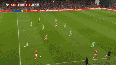 4’埃里克森主罚自由球直接打门,皮球被白俄罗斯人墙挡出
