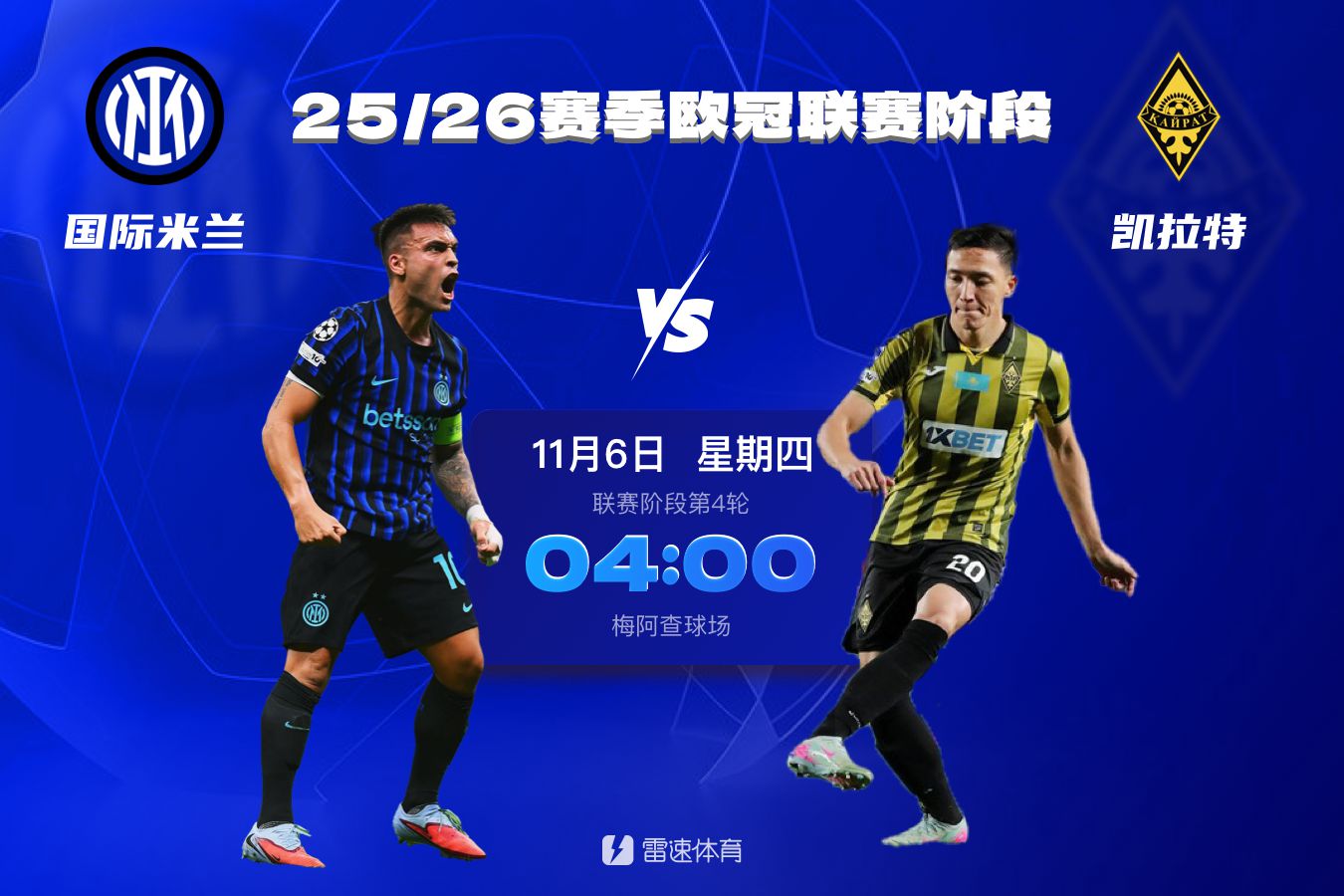 6686体育app11月5日讯 北京时间6日凌晨4时,欧冠联赛事阶段第四轮,国际米兰将坐镇主队场对阵哈萨克斯坦球队凯拉特。