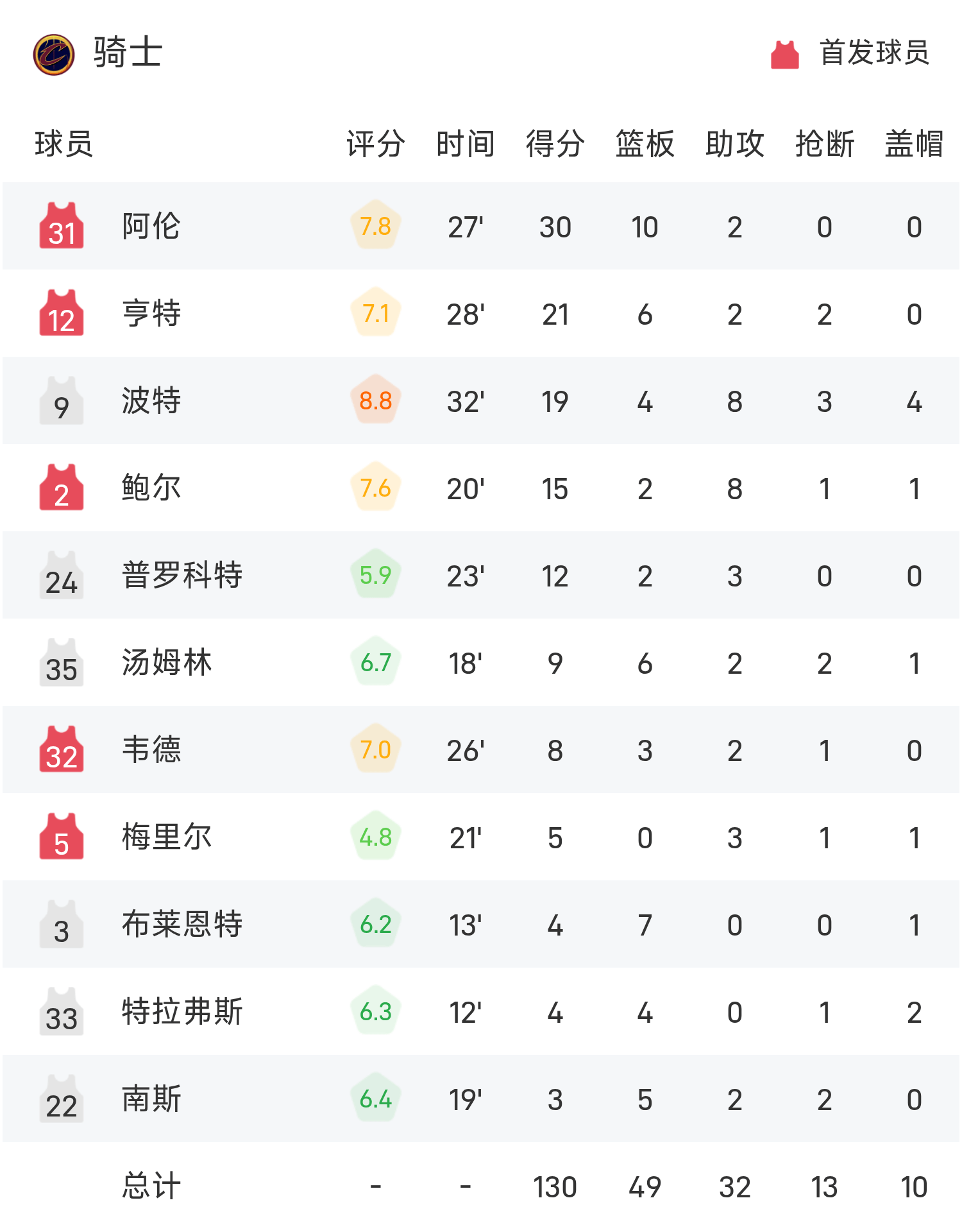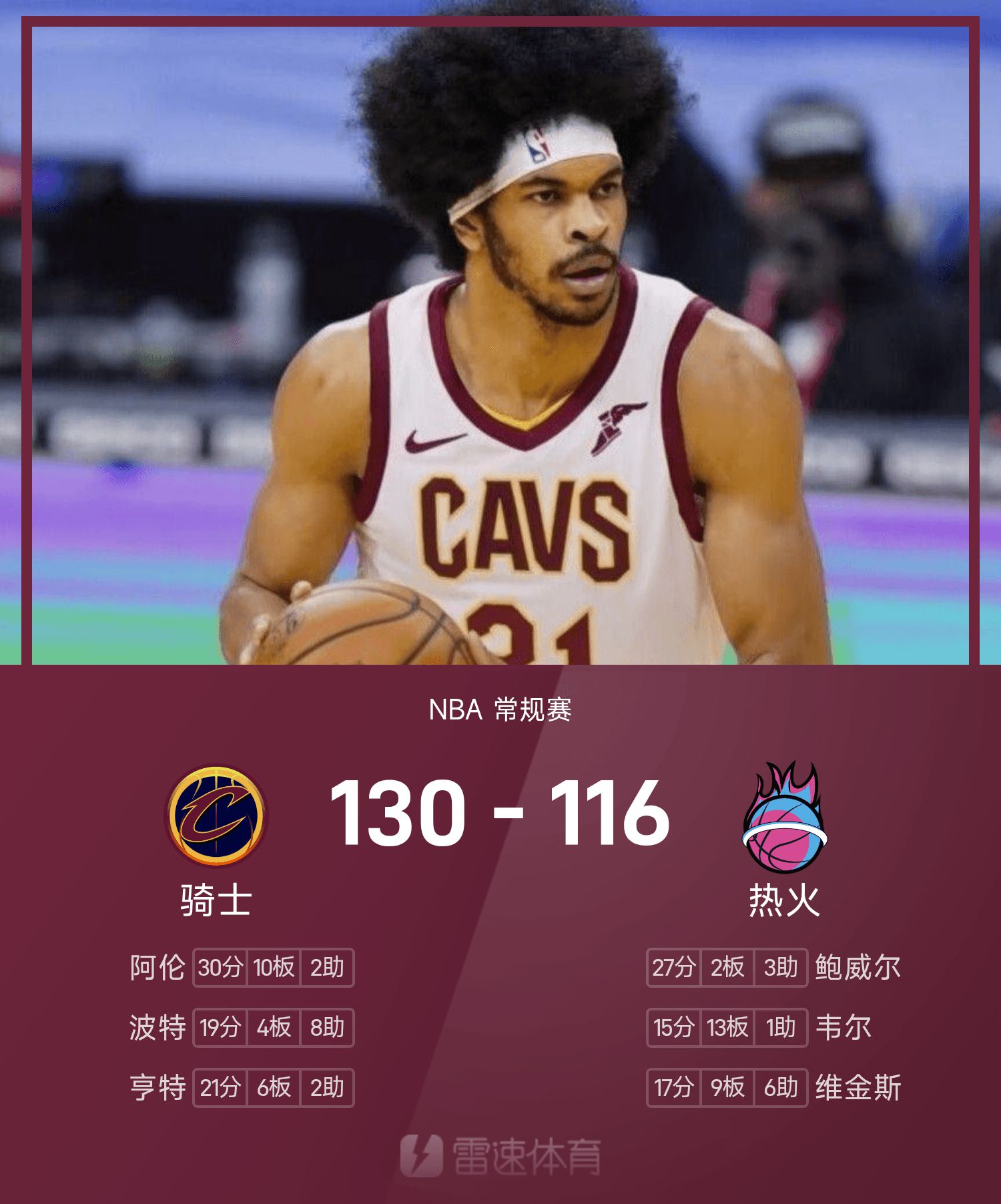 NBA战报:阿伦30分10板,骑士130-116逆转热火