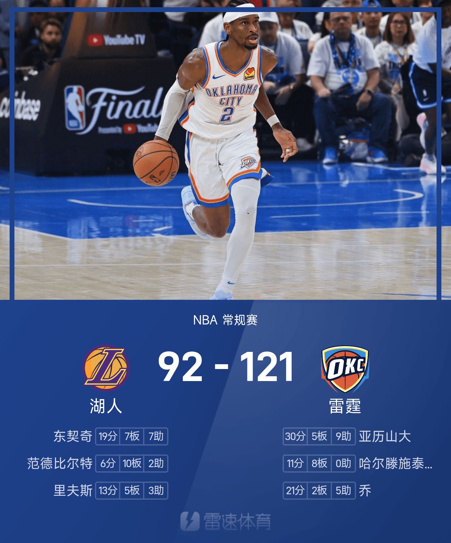 湖人92-121雷霆