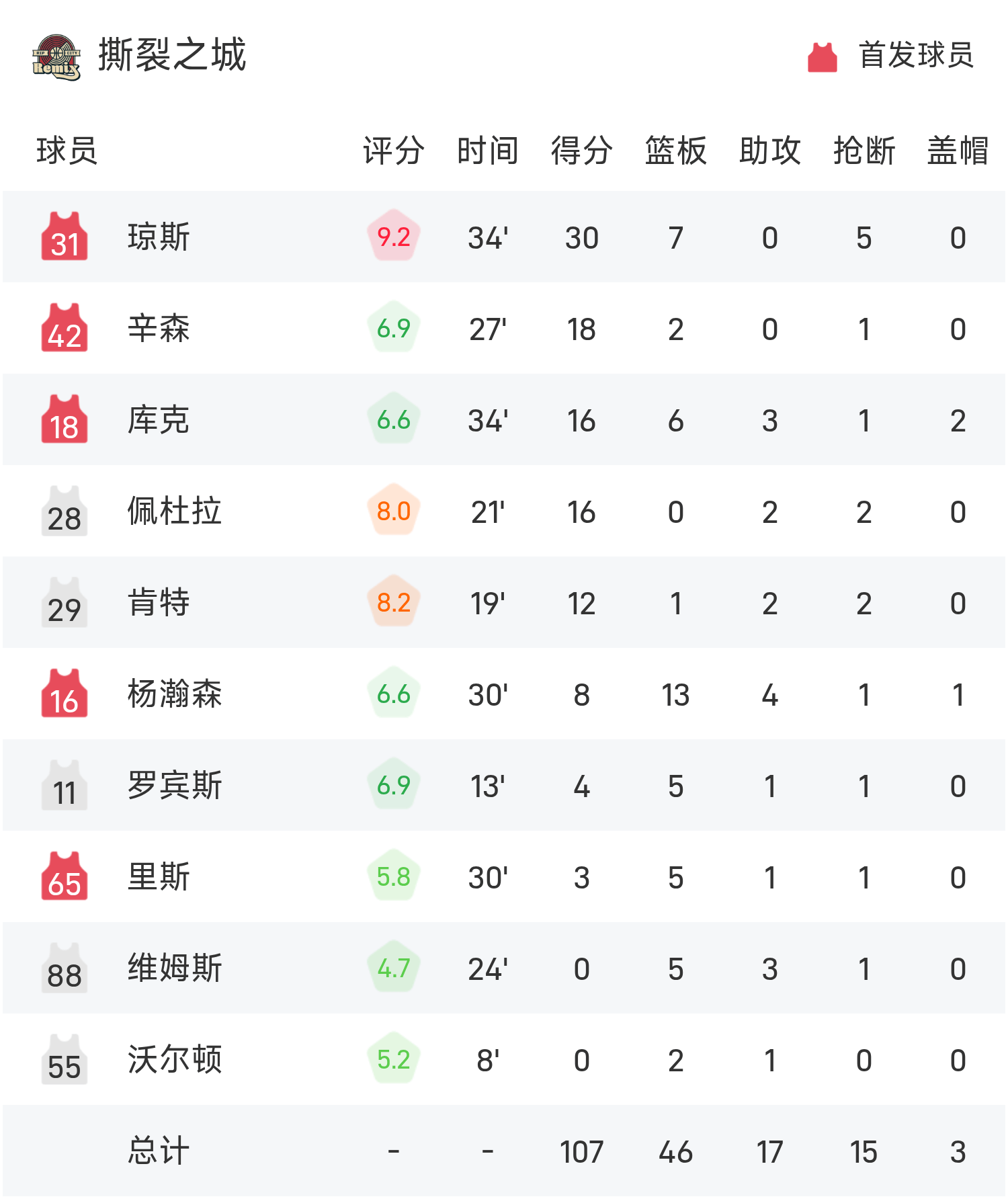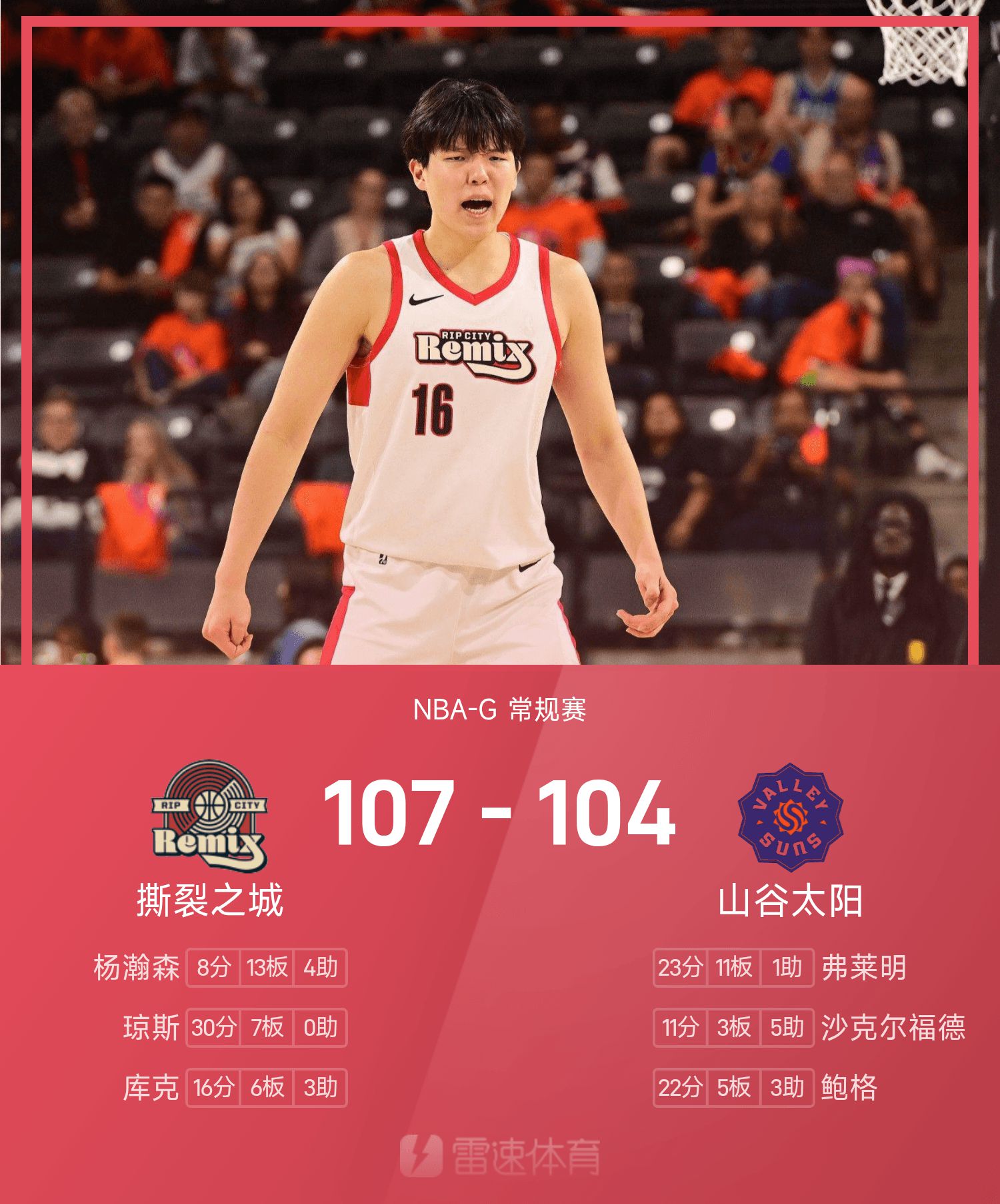 6686体育app11月15日讯 25/26赛季NBA G联赛事,山谷太阳对阵撕裂之城。双方全场战罢,山谷太阳104-107不敌撕裂之城。琼斯砍下全场最高的30分7板,杨瀚森8分13抢篮板,率领撕裂之城胜利逆转对手。