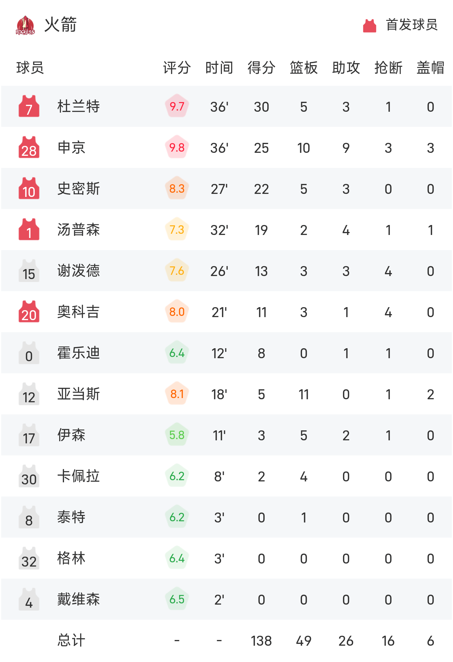 球员的表现非常亮眼,超出预期