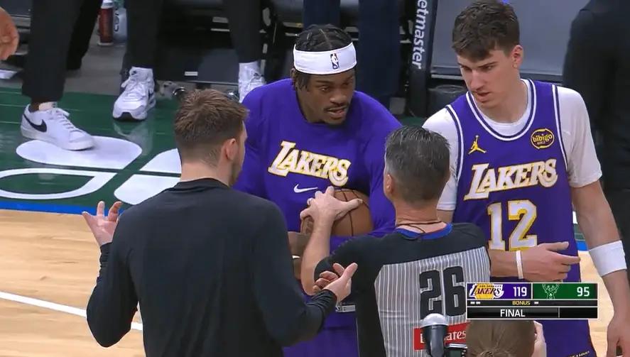 6686体育app11月16日讯 今日湖人119-95击败雄鹿,赛后发生了一个小插曲,湖人前锋范德比尔特等人想要将竞赛用球献给得到NBA生涯首分的新队员蒂耶罗,却遭到26号主裁判法拉赫的拒绝,双方发生小冲突,最终裁判员还是收回了竞赛用球,但之后雄鹿核心字母哥闻讯此事将球拿下给到了湖人众将,此事才算平息。