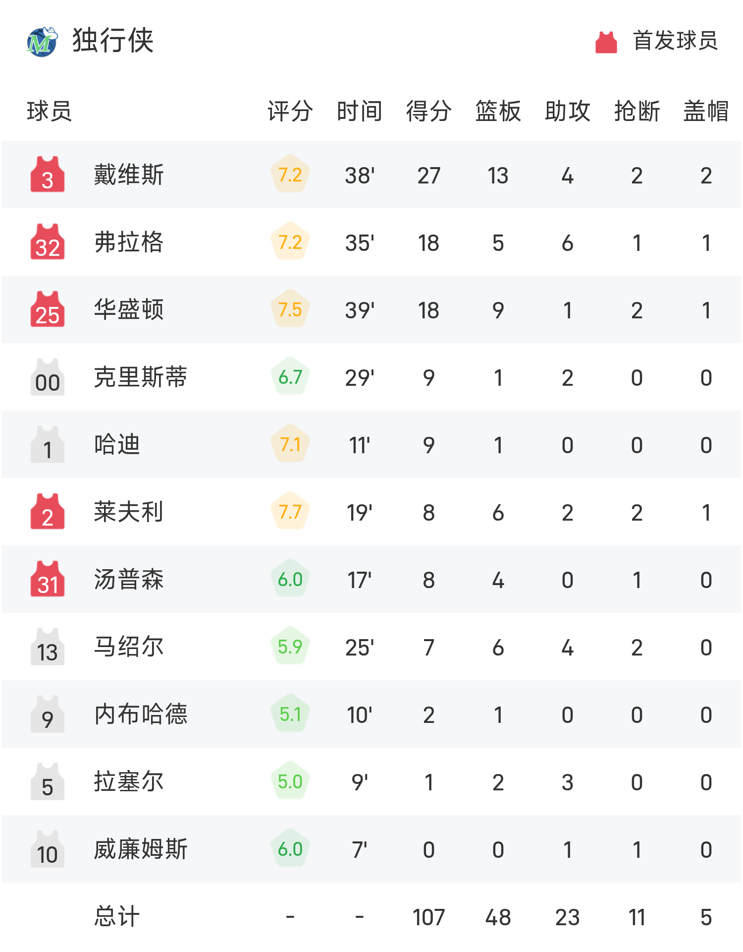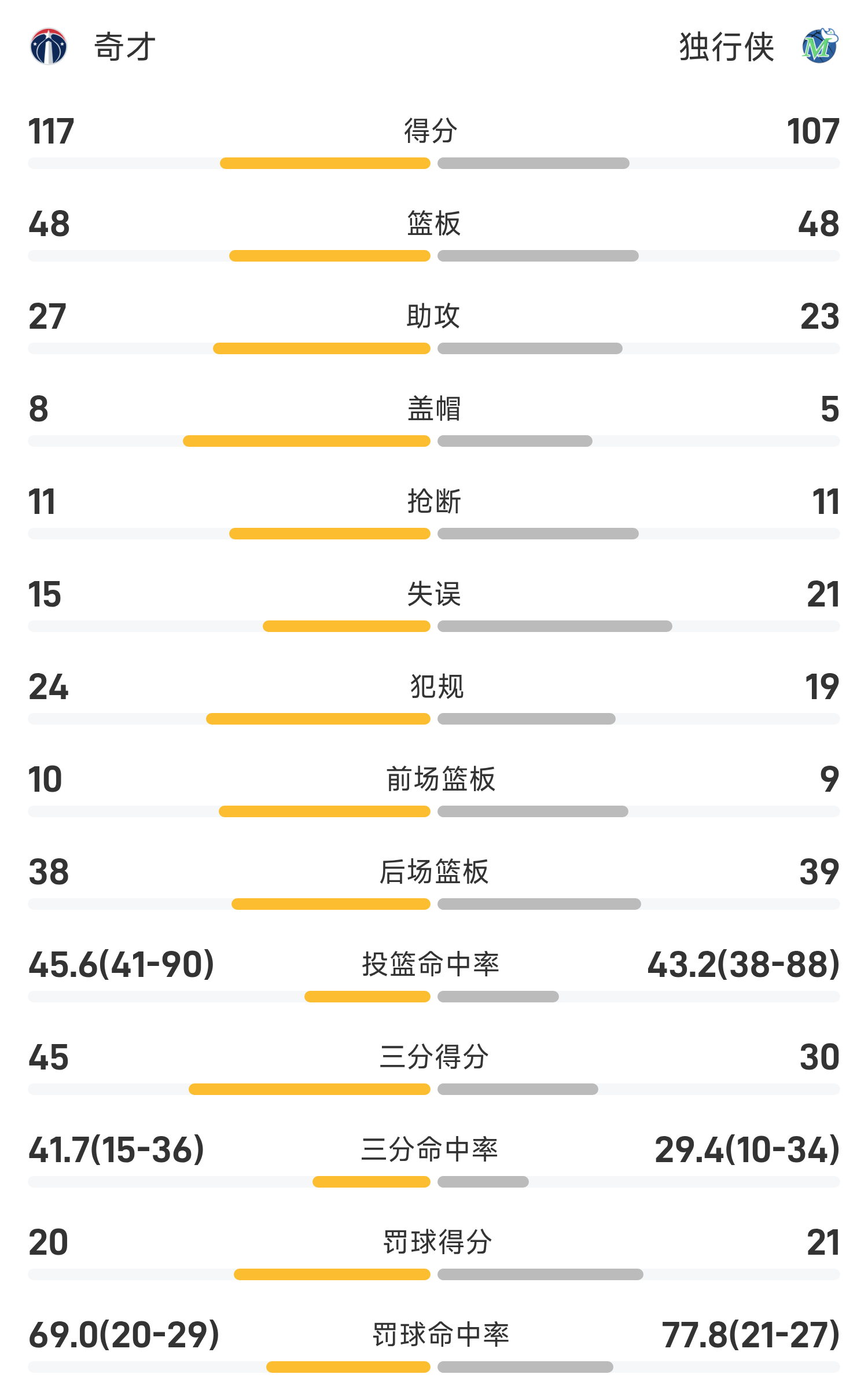 6686体育10月25日讯 25/26赛季NBA 常规赛,独行侠对阵奇才。双方全场战罢,独行侠107-117不敌奇才。乔治砍下全场最高的34分11板4助,率领奇才胜利取胜。